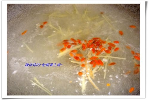 同時加入蒜末、薑絲、枸杞、參鬚一起煮。