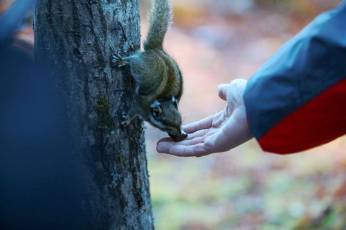 生活在這裡的小松鼠也大膽可愛。它們如果精靈一般在遊人周圍跳躍,