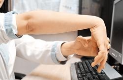 長時間伏案工作、打電腦,很多人都有肩頸痠麻,甚至手臂、大拇指僵硬疼痛的經驗,書田診所物理治療組長蔡佩玲示範幾招手部伸展操,不必離開座位就能輕鬆保健,讓電腦手問題不再來。