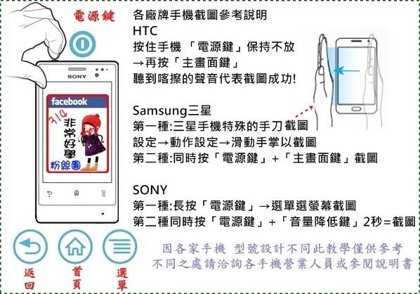 各廠牌手機截圖參考說明