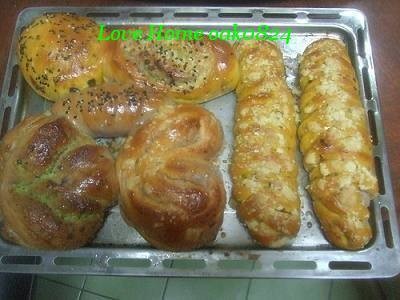 常在偶家出現的雞絲 不想烤太多次,就出現如此擁擠的窘態 毛毛虫造型>>距離大些,紋路才會明顯,下次記住了 布里造型,進爐前,刷了蛋汁後,從中間劃一刀,撒酥菠蘿,黑芝麻 這是小布里的造型,可能是麵糰太軟了,紋路不是很明顯>>雞絲圖就是它 頭一次做的造形麵包,真是醜不拉嘰的,發酵時還能見人,烤了以後那種臃腫身段,實在是不怎麼樣 >>幸好美味不減 用的是三色麵糰,明天還有續篇....